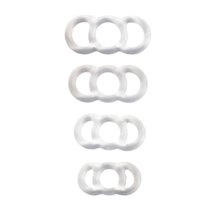 Sada 4 ks geniálních silikonových nevibračních erekčních kroužků s úchyty pro snadné nasazení.
