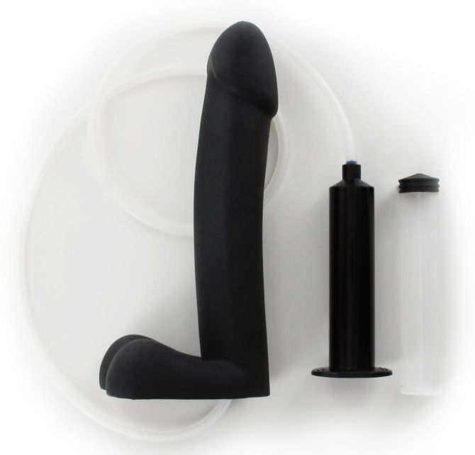 Uvnitř dilda je po celé jeho délce asi 0,5 cm otvor. Dildo je napevno propojeno s 80 cm dlouhou silikonovou hadičkou, na jejímž konci je stříkačka. Ano, stříkačku stačí naplnit např. umělým spermatem a poté už můžete kdykoliv stiskem stříkačky simulovat mužskou ejakulaci.
