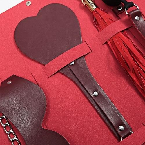 SM hrátky ve znamení luxusu a originality. Tato sada v červeném provedení se stříbrnými a zlatými kovovými prvky posune vaše hry na vyšší úroveň.