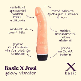Popis výrobku BASIC X José realistický gelový vibrátor tělový