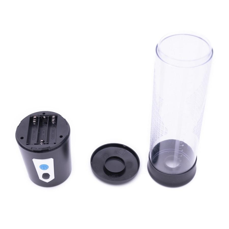 Průhledný válec: válec je z obou stran opatřen měřidlem - v centimetrech a v palcích. Válec má hloubku 20 cm a vnitřní průměr 6 cm.