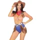 Hravý pětidílný kovbojský kostým s topem, kalhotami, páskem, šátkem a odznakem.