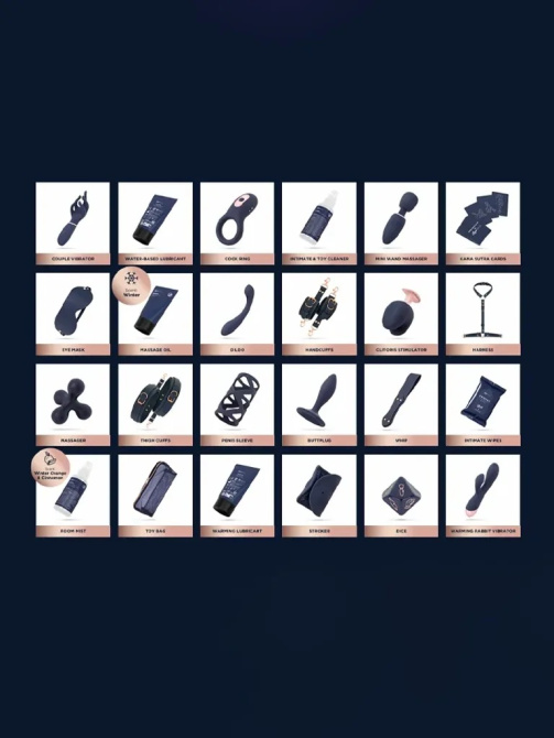 Uvnitř stylové krabice na tebe čeká pečlivě namixovaná kolekce 24 erotických překvapení pro celé adventní období, která tě vezmou na dobrodružnou cestu plnou nových zážitků. Najdeš zde celkem 9 rozmanitých erotických hraček pro ženy i muže – od vibrační mini hlavice, přes anální kolík nebo vibrační erekční kroužek, až po kompaktní vibrátory a masturbátor pro něj. Každá hračka byla vybrána s ohledem na maximální rozkoš, variabilitu a možnost hrát si podle vlastních pravidel.
