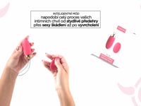 Vajíčko ovládejte samostatně nebo pomocí dálkového ovládání. Obojí je možné. Pomocí dálkového ovládání máte na výběr 26 variant vibrací a jejich intenzit, včetně inteligentního módu. Inteligentní režim funguje tak, že tento program napodobí celý proces vašich intimních chvil od stydlivé předehry přes sexy škádlení až po vyvrcholení.