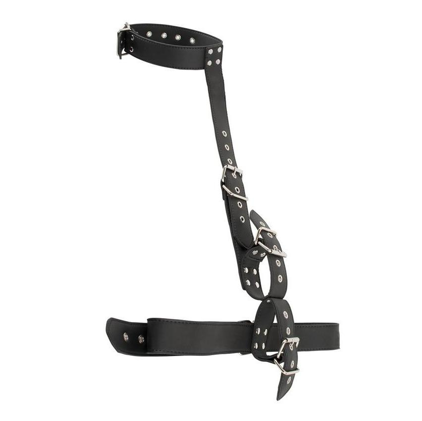 Kvalitní poutací set ze 100% veganského materiálu napohled naprosto nerozeznatelný od té nejkvalitnější pravé kůže. Kvalitní obojek, pouta a opasek. Vše se pohodlně a přesně upraví na postavu pomocí přezek.
